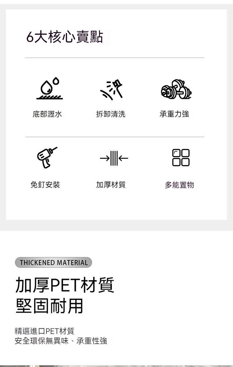2分鐘前【免打孔吸盤置物架】免鑽孔不傷牆!隨心換位不留痕!乾淨整潔收納無拘束! - 【虧本特價】四入組 - NT$1280(均價320/入)