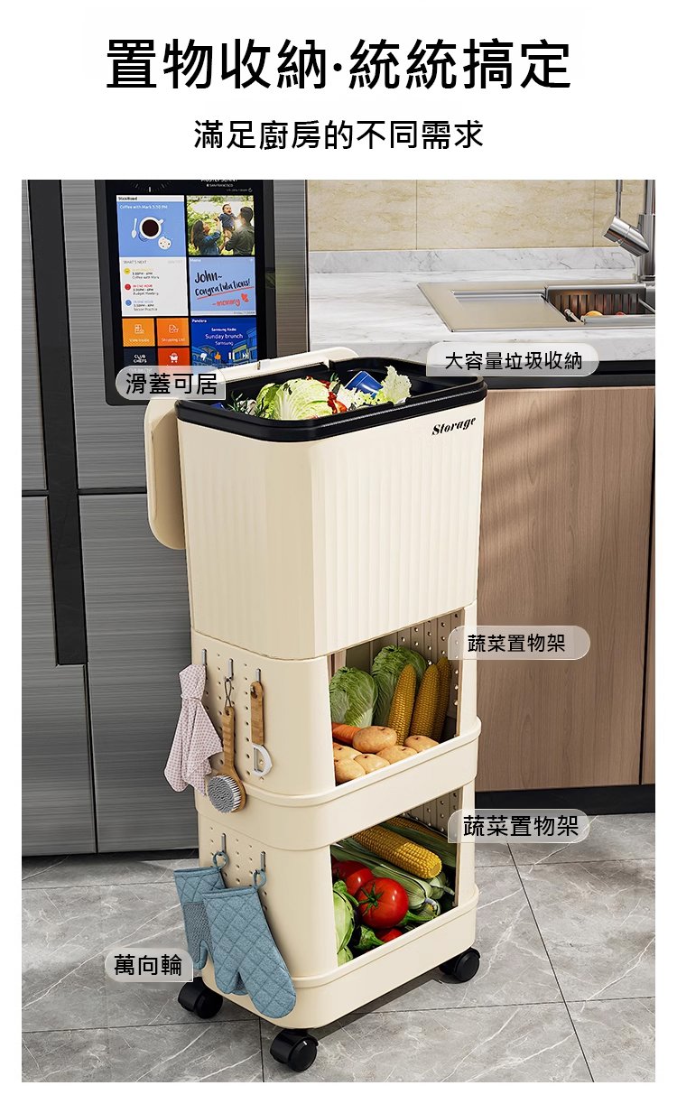 12分鐘前【不彎腰】家用可移動多功能置物垃圾桶 - 【超殺*贈20垃圾袋】1入組$279