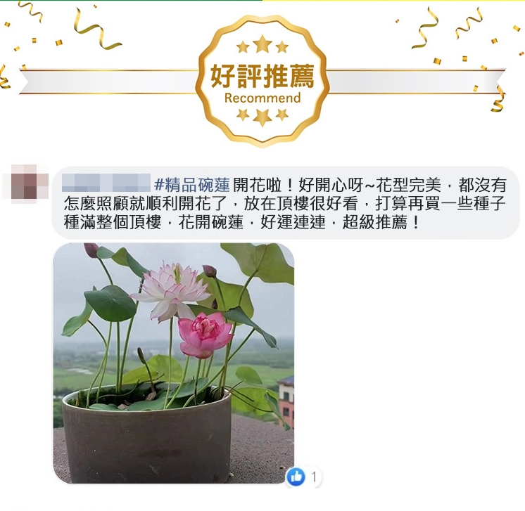 7分鐘前『招財轉運』水培碗蓮 - ★★★店主推薦【50粒+碗蓮專用營養液2+養殖盆】【綠葉+莊根+促芽+催花】,開爆了!僅需NT$1088